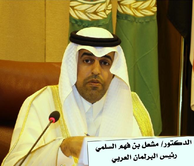 وطالب رئيس البرلمان العربي دعم العالم العربي في مواجهة هذه التحديات الجسيمة، والمتمثل في قبول دولة إسرائيل بمبادرة السلام العربية، والانسحاب من كافة الأراضي العربية المحتلة وفقا لقرارات الشرعية الدولية، وقيام دولة فلسطينية مستقلة على حدود عام ١٩٦٧م ذات سيادة كاملة عاصمتها مدينة القدس الشرقية؛ واحترام سيادة الدول العربية وعدم التدخل في شؤونها الداخلية والتوقف عن تكوين ودعم الميليشيات المسلحة داخل الدول العربية؛ و دعم جهود الدول العربية والإسلامية في القضاء على الإرهاب في العالم العربي والإسلامي، وفي هذا السياق دعم وثمن إنشاء المملكة العربية السعودية للتحالف الإسلامي العسكري لمحاربة الإرهاب والذي انضمت له حتى الآن 41 دولة عربية وإسلامية، ودعا الدول العربية والإسلامية التي لم تنضم أن تنضم إليه.