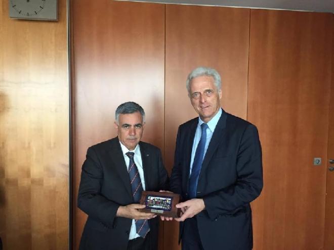 كما وناقش الطرفان امكانية انضمام دولة فلسطين إلى الغرفة التجارية الصناعية الالمانية العربية من أجل الاستفادة من البرامج والمشاريع والخبرات التي تقدمها الغرفة في هذا المجال.