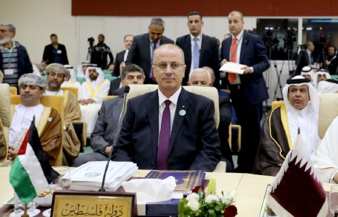 واستدرك الحمد الله: "إن هذا كله، إنما يستدعي، أيها الأخوة والأخوات، موقفا دوليا حازما وموحدا للجم انتهاكات إسرائيل، وإلزامها بوقف أنشطتها الاستيطانية غير الشرعية، ونطالب أشقائنا العرب بمواصلة دعم الشعب الفلسطيني وتعزيز ثباته وصموده، لا سيما في مدينة القدس المحتلة الصامدة، التي تحاول إسرائيل تغيير تاريخها وهويتها وفصلها عن محيطها العربي والإسلامي".