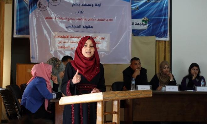 وانقسم الفريقان المتناظران إلى مؤيّد للمقولة ضمّ كلٌ غادة القصاص ،وهيب عمار ، عبد الرحمن ابوعزوم ، بينما ضمّ الفريق المعارض روان رمضان ،وانغام الاسطل ،وشرف العايدى ، أما أعضاء لجنة التحكيم تشكلت من كل من تغريد العمور ،ومحمد ،واسلام عطاالله،و بيسان شحادة .
