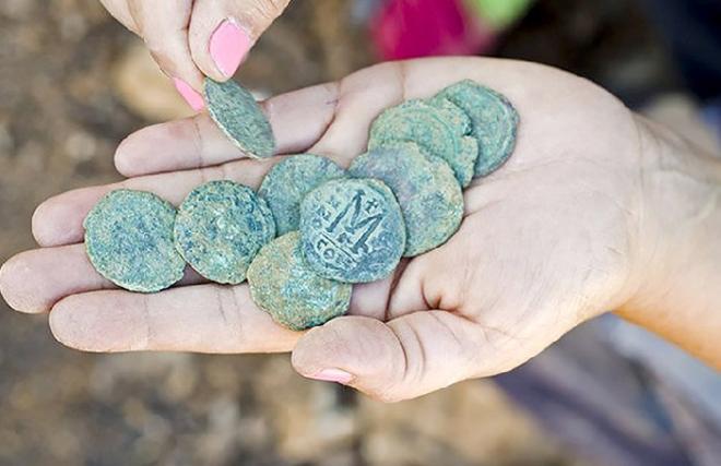 أعلن عن اكتشاف عدة موجودات أثرية من فترات تاريخية مختلفة في فلسطين منها قطع نقدية بيزنطية ومقاطع طريق رومانية وطاولة حجرية عملاقة ما زالت بمثابة لغز. وتم العثور على تسع قطع نقدية نادرة من العهد البيزنطي خلال أعمال حفريات وتنقيب في الطريق بين يافا والقدس تعود للقرن السابع ميلادي. وعثر على القطع النقدية المصنوعة من البرونز بين أطلال عمارة كانت تستخدم على ما يبدو نزلا للحجاج الصليبيين القادمين إلى القدس ويعتبرها الباحثون دليلا محسوسا على الغزو الفارسي لفلسطين في نهاية العهد البيزنطي وقتذاك. ويعتقد الباحث الأثري دكتور وليد أطرش أن صاحب القطع النقدية قد بادر لتخبئتها داخل حقيبة صغيرة دسها في ثقب سحري داخل جدار العمارة آملا أن يعود ويأخذها بعد زوال الخطر الفارسي ويظهر الاكتشاف أنه لم يتسن له ذلك. وتحمل القطع النقدية صور ثلاثة من القياصرة البيزنطيين البارزين وهم يرتدون الزي العسكري: جوستينيانوس (483-565) وماوريكيوس (539-602) وفوكاس (610-547) وكلها صكت في القسطنطينية. وردا على سؤال لصحيفة "القدس العربي" اللندنية يرجح أطرش أنه تم تخبئة الكنز في ظل تهديدات الغزو الفارسي للبلاد والذي وقع فعلا عام 610 وكان أحد أسباب نهاية الحكم البيزنطي فيها. ويتابع "يبدو أن العمارة المذكورة قد تهدمت ولاحقا تم استخدامها في سلاسل حجرية زراعية". ويلفت أطرش إلى اكتشاف آثار كنيسة بيزنطية قبل سنوات قريبا من موقع اكتشاف الكنز منوها على أن الباحثين يرجحون أن بلدة بيزنطية كانت تقوم في المكان تدعى "بيكومكوبا" وتم حفظ تسميتها في اسم القرية الفلسطينية القائمة هناك اليوم بيت نقوبا داخل أراضي 48. بالتزامن تم اكتشاف طريق من العهد الروماني في موقع قريب مجاور لقرية بيت جمال المهجرة غربي القدس عمرها 2000 سنة. وتمتد الطريق على طول 1.5 كم وعرضها ستة أمتار وهي تربط بين قرية بيت نطاف وبين الطريق الرئيسية يافا القدس التي عرفت بطريق القيصر وهي محور مركزي على الطريق بين بلدة بيت جبرين وبين القدس. ويرجح أطرش أن الطريق قد شقت حوالي عام 130 ميلادي عشية زيارة القيصر هدريانوس للبلاد الذي ورد اسمه منحوتا على بعض حجارة الطريق المكتشفة. كما تم اكتشاف قطع نقدية رومانية من عام 67 ميلادي وقطع من الفترة الأموية. ويشير الباحث الأثري أنه حتى تلك الفترة كانت الطرق في البلاد قليلة وفرعية حتى شق الرومان شبكة طرق رئيسية محلية ودولية كجزء من الاعتبارات العسكرية والتجارية للامبراطورية الرومانية.