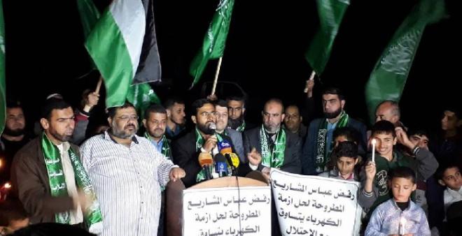 وفي كلمة خلال مسيرة جماهيرة نظمتها "حماس" مساء الاحد، بحي التفاح  شرق مدينة غزة احتجاجاً على أزمة الكهرباء وخصم الرواتب، طالب المصري بوقف الضرائب "الباهظة" المفروضة على وقود محطة الكهرباء ووقف خصومات رواتب الموظفين.