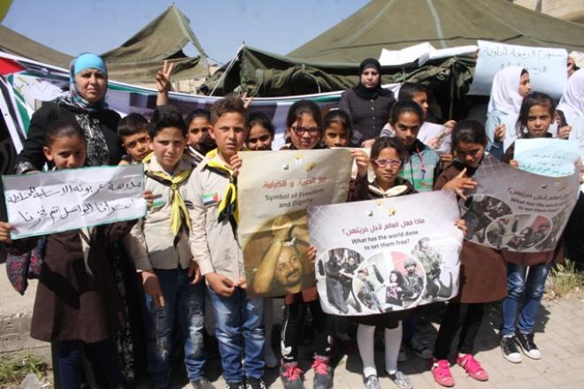 أعلنت 14 طالبة من مدرسة عربونة الأساسية المختلطة شرق جنين، اليوم الثلاثاء، إضرابا عن الطعام لمدة يوم، داخل خيمة التضامن أمام مقر الصليب الأحمر في مدينة جنين، تضامنا مع الأسرى في سجون الاحتلال.