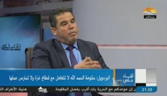 وفي لقاء تلفزيوني عبر قناة "الأقصى" الفضائية التابعة لحماس ، مساء الجمعة، قال البردويل "إن الأمر لم يتوقف إلى حد هنا ولكنه تجاوز ذلك لتعبث الحكومة بأعصاب الناس وأرزاقهم؛ بهدف إخضاع حركة حماس" .حسب تعبيره
