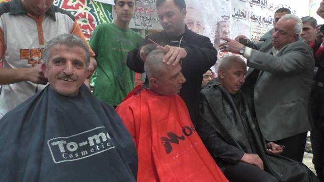 وتجمع نشطاء من الحملة في خيمة التضامن مع الأسرى على دوار ابن رشد في مدينة الخليل حيث قام عدد منهم بحلق شعورهم، وفي وقت لاحق قيد النشطاء أيديهم بالسلاسل وانطلقوا في مسيرة مرددين الهتافات المناصرة للأسرى ورافعين صور الأسرى باتجاه وسط المدينة في ميدان باب الزاوية ومن ثم توقفوا قرب الحاجز الإسرائيلي على المدخل الشمالي لشارع الشهداء، حسبما أفاد الناشط في الحملة عماد أبو شمسية.