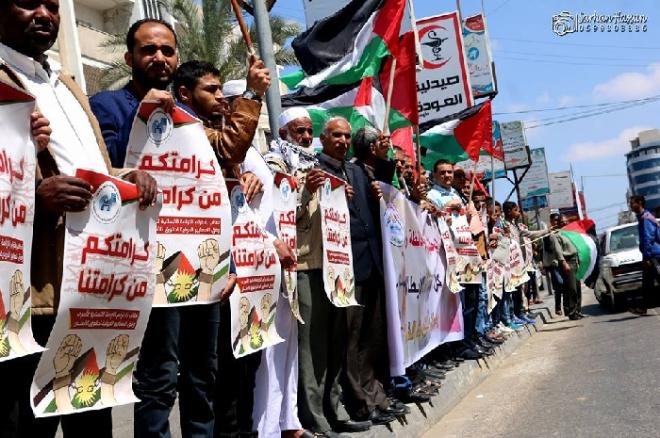 وثمن النجار المشاركة الواسعة في الوقفة، داعياً لاستمرار الفعاليات الوطنية والشعبية، في كافة أرجاء الوطن، بل ونقلها للخارج، محذرا في الوقت ذاته من نوايا إسرائيلية بقمع الأسرى المضربين، لذلك يجب استباق هذه النوايا بتدويل القضية على أوسع نطاق.