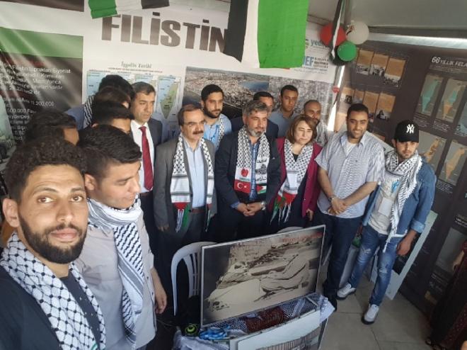 وتضمنت خيمة فلسطين في المعرض صورا تجسد معاناة الأسرى في السجون الإسرائيلية، حيث قدم طلبة فلسطين شرحا باللغة التركية حول واقع الأسرى وانتهاكات الاحتلال بحقهم، ومطالب الأسرى المشروعة في معركة الأمعاء الخاوية.