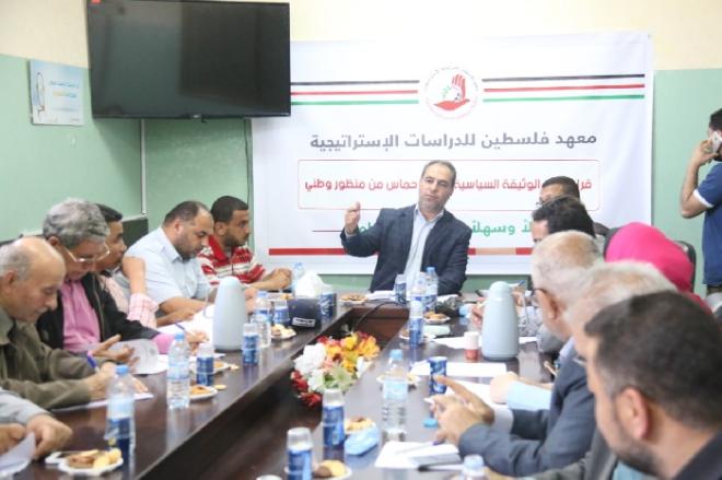 وأكد هؤلاء خلال منتدى التفكير الذي ينظمه معهد (فلسطين للدراسات الاستراتيجية) في مدينة غزة بعنوان "قراءة في الوثيقة السياسية لحماس من منظور وطني" أن أهمية الوثيقة جاءت في ظل تأزم مسار التسوية السياسية وانسداد الأفق وتفاقم الوضع المعيشي في القطاع, وأن الوثيقة ينبغي النظر إليها كوحدة واحدة ولا يجوز تجزئتها.