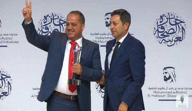 نال صحفي فلسطيني من مدينة نابلس بالضفة الغربية، على المرتبة الاولى في جائزة الصحافة العربية، بدورتها السادسة عشرة، عن محور "الصورة الصحفية" والتي عقدت مؤخرا في دولة الإمارات.
