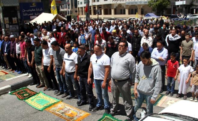 أدى المئات من المواطنين قدموا من مختلف قرى وبلدات ومخيمات وضواحي طولكرم اليوم، صلاة الجمعة، في خيمة الاعتصام وسط مدينة طولكرم، تضامنا مع الأسرى المضربين عن الطعام الذين دخل إضرابهم اليوم التاسع عشر على التوالي.