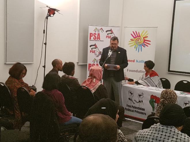 وقدم سفير دولة فلسطين لدى جنوب افريقيا هاشم الدجاني شرحا عن قضية الأسرى وأسباب إضرابهم عن الطعام، ومطالبهم الإنسانية، وحقهم في الحرية والكرامة. وشكر كل من تضامن مع الأسرى.