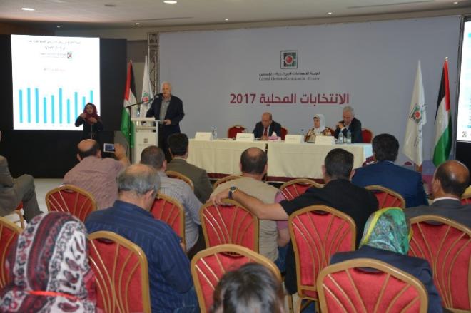 عقد حنا ناصر رئيس لجنة الانتخابات المركزية الفلسطينية مؤتمراً صحفيا في المركز الإعلامي للجنة الانتخابات في مدينة البيرة مساء الخميس، استعرض فيه التحضيرات لإجراء الانتخابات المحلية المقررة يوم السبت المقبل.