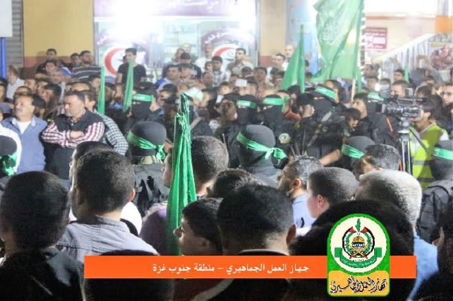 نظمت حركة "حماس" مساء الخميس وقفة جماهيرية في مدينة غزة ابتهاجا بالكشف عن قاتل الشهيد القائد مازن فقها.
