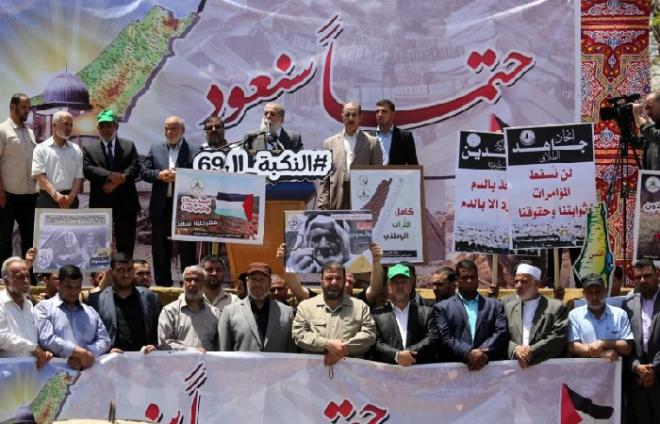 أكد القيادي في حركة الجهاد الإسلامي في فلسطين، نافذ عزام، أن شعبنا اليوم بعد نحو 69 عامًا، على النكبة الفلسطينية، ماضي في طريقة، مُصرًا على مواصلة الجهاد؛ في الوقت الذي ما زال يُقصر العالم العربي والإسلامي تجاه قضيتنا، تركوا أرضنا، في ظل أزمة طاحنة.