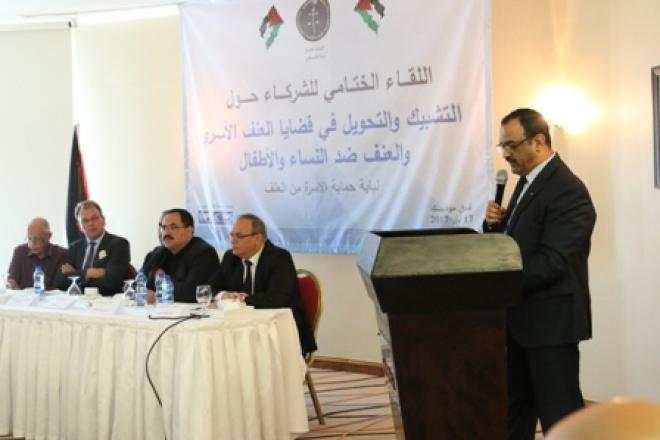 أنهت نيابة حماية الاسرة من العنف وبالتعاون مع بعثة الشرطة الاوروبية اليوم الاربعاء في رام الله، اللقاء الختامي حول التشبيك والتحويل في قضايا العنف الاسري والعنف ضد النساء والاطفال، وذلك بحضور كل من النائب العام المستشار أحمد براك، وزير التنمية الاجتماعية ابراهيم الشاعر، وزير التربية والتعليم صبري صيدم، ووكيل وزارة الصحة أسعد رملاوي، والقائم بأعمال بعثة الشرطة الاوروبية مايك البيرس.