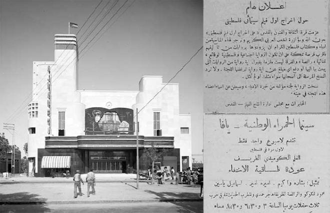 وفي إعلان آخر لها تفاخر سينما الحمرا الوطنية في يافا أنه بعد شهر ونيف فقط على الإعلان عن فيلم عودة طاقية الإخفاء في صالات العرض في مصر، حتّى تعلن عن عرض خاصّ، هو الأوّل في فلسطين". وفي إعلان في الصحيفة ذاتها تدعو سينما الرشيد في يافا لفيلم الموسم: "غنى حرب"، من تمثيل: الهام حسين، وبشارة واكيم، وعزيز عثمان، وحسن فايق، وهاجر حمدي.