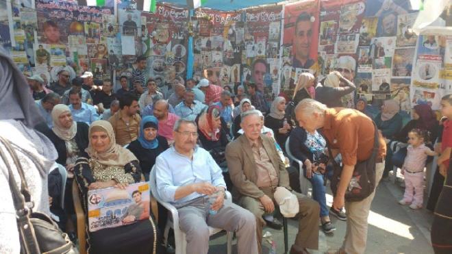 وتابع النائب أبو ليلى خلال مشاركته في الإضراب عن الطعام في خيمة الاعتصام وسط رام الله وكذلك مسيرة قلنديا " إننا مطالبون بشكل جدي بعد 36 يومًا من إضراب الأسرى في سجون الاحتلال عن الطعام بمعركة "الحرية والكرامة"، بزيادة الدعم والإسناد لهم على الصعيدين الشعبي والوطني.