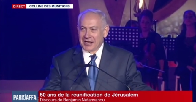 وفي حفل بذكرى "ضم القدس وتوحيدها" في إشارة الى احتلال إسرائيل القدس الشرقية وضمها لـ"سيادتها" في حرب الأيام الستة عام 1967 قال نتنياهو "هل كانت القدس يوما ما عاصمة لشعب آخر غير الشعب اليهودي؟ لم يكن أبدا. هل سمح أحد بحرية العبادة لمتبعي جميع الديانات في القدس غيرنا؟ بل بالعكس. لذلك لا يمكن ضمان حرية العبادة للجميع في القدس إلا تحت سيادة إسرائيل".