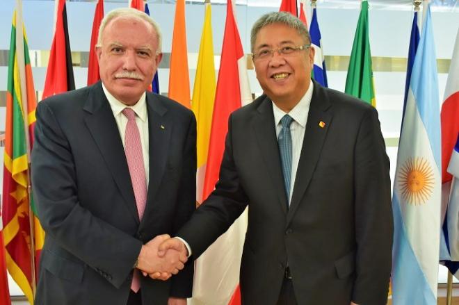 استقبل وزير الخارية الفلسطيني رياض المالكي في مكتبه بمقر الوزارة في رام الله، اليوم الثلاثاء، المبعوث الصيني لعملية السلام السيد قونغ شياو شينغ بحضور السفير مازن شامية مساعد الوزير لشؤون آسيا وإفريقيا والسفير الصيني لدى فلسطين السيد تشي شينغتشونغ ووفدين رفيعي المستوى من الجانبين.