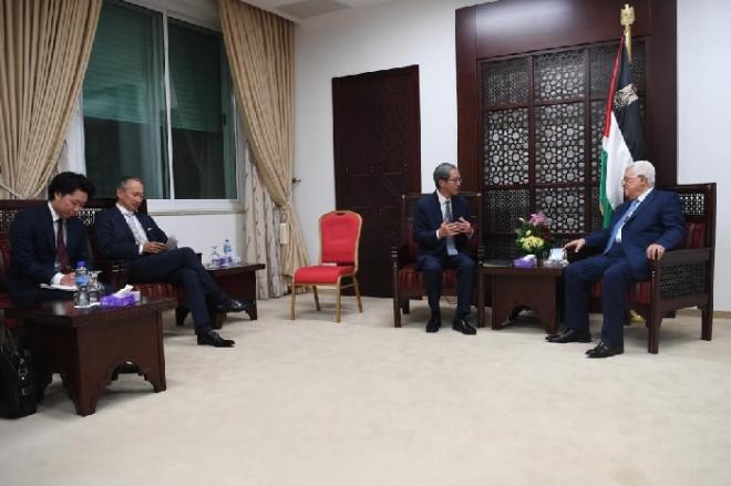 جاء ذلك خلال لقاء المبعوث الياباني، مساء الأربعاء، مع الرئيس الفلسطيني محمود عباس (أبومازن) بمقر الرئاسة في مدينة رام الله.
