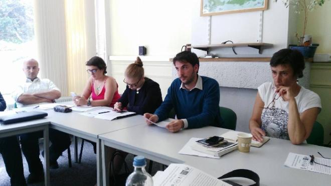 بدأ الإجتماع بتقديم الوفد الفلسطيني شرحا مفصلا حول مبادرة عدد من المؤسسات الفلسطينية والأوروبية الصديقة لتنظيم مؤتمر أوروبي حول الإستيطان لا سيما في مدينة القدس المحتلة، وتوفر أساس مادي وأخلاقي وقانوني لبناء تحالف أوروبي عريض لمواجهة الاستيطان، ودعم الحقوق الوطنية المشروعة للشعب الفلسطيني، وفي مقدمتها حق العودة وتقرير المصير واقامة الدولة الفلسطينية المستقلة بعاصمتها القدس، والمرتكزة على العديد من القرارات الدولية المناهضة للإستيطان الإسرائيلي، وأخرها قرار مجلس الأمن الدلوي 2334 ، والأليات والسبل الكفيلة بتفعيل وتطبيق هذه القرارات، وإجبار إسرائيل على إحترام القرارات الدولية والقانون الدولي، بما يوقف سياساتها العنصرية بحق الشعب الفلسطيني، ويمنع نزعتها الإستعمارية المتسارعة للتحول الى دولة أبرتهايد عنصري في القرن الواحد والعشرين.