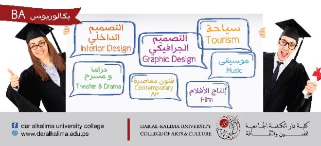 أطلقت دار الكلمة الجامعية للفنون والثقافة في مدينة بيت لحم، وتزامناُ مع انتهاء امتحانات الثانوية العامة "الإنجاز"، باقة من برامج البكالوريوس الملائمة لسوق العمل، حيث أطلقت سبعة برامج بكالوريوس فريدة ومتميزة كالسياحة الثقافية والمستدامة، التصميم الداخلي، الفنون الأدائية، التصميم الجرافيكي، الفنون المعاصرة، انتاج الأفلام.