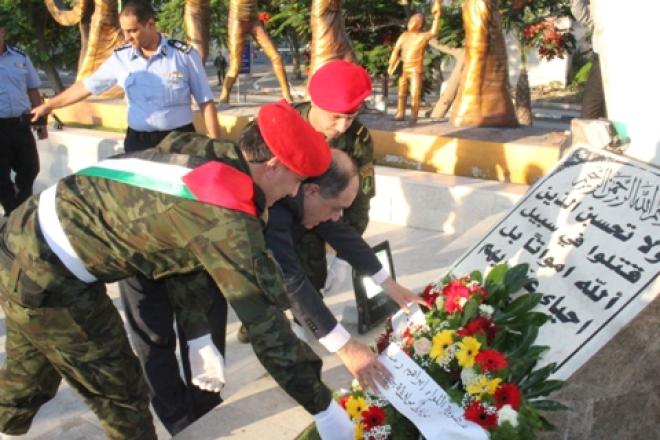 وضع محافظ جنين إبراهيم رمضان، اليوم الأحد ، إكليلا من الزهور على صرح الشهيد أمام مقر المحافظة بميدان الشهيد أبو عمار، باسم الرئيس محمود عباس، لمناسبة عيد الفطر السعيد.