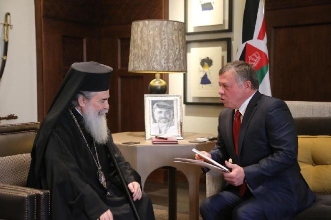 شددت مذكرة نيابية أردنية على ضرورة استدعاء البطريريك اليوناني ثيوفيلوس الى عمان لـ"كف يده، ووضع حد لعبثه بمقدسات الطائفة في القدس، لتفريطه بأكثر من 500 دونم من الوقف المسيحي الارثوذكسي في القدس".