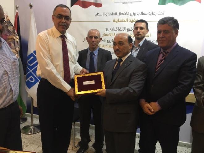 قال وزير الأشغال العامة والإسكان الفلسطيني مفيد الحساينة إنه "جرى توقيع الاتفاقيات بين الفريق الوطني للاعمار و13 مؤسسة تعليمة و اجتماعية ومؤسسات ذوي الإعاقة لاستلام المبالغ المالية من المنحة الكوتية المخصصة لهم وهي حولي 3 مليون دولار ."