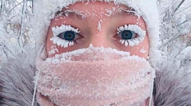 وسجلت محطة الطقس الرسمية في القطب البارد درجة حرارة تصل إلى 59 درجة تحت الصفر بالقرية، فيما قال السكان المحليون إن قراءاتهم أكثر انخفاضاً، بحيث وصلت إلى 67 درجة تحت الصفر، وهى أقصى درجة حرارة منخفضة لمنطقة مأهولة بالسكان في العالم، ومعه يمكن أن تتجمد رموش العين.