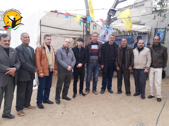 قام وفد من هيئة شؤون الأسرى والمحررين - المحافظات الجنوبية اليوم الأحد بزيارة الأسرى المحررين الذين تم الافراج عنهم مؤخراً وهم " الأسير المحرر باسل أبو زينة (41 عامًا) من مدينة جباليا ، والذى أمضى 10 أعوام في السجون ، والأسير طارق أحمد المدلل (33 عامًا) من مدينة رفح، أمضى 14 عامًا، والأسير عصام عبد الرؤوف المنيراوي (33 عامًا) من مدينة رفح، وأمضى 12 عامًا في الأسر، والأسير زياد عياد الصوفي (36 عامًا) من مدينة رفح، أمضى 12 عامًا في سجون الاحتلال، والأسير محمود أبو عاصي (22 عامًا) من سكان بنى سهيلا ، قضى 29 شهرًا في السجون ، والأسير أسامة سليمان أبو الجديان (51 عامًا) من مخيم جباليا، أمضى 30 عامًا في سجون الاحتلال.