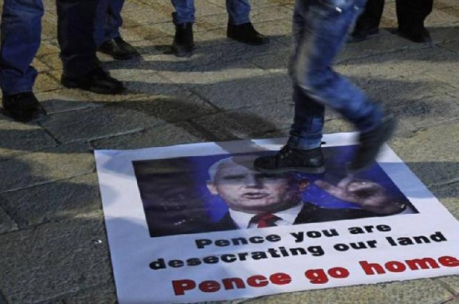 حيث تم التأكيد له على أن الحل الوحيد الممكن يتمثل في حل الدولتين وان القدس الشرقية لها وضع قانوني خاص وهي عاصمة دولة فلسطين، وأن الالتزام بالقرارات الدولية هي المدخل الرئيس للسلام وأن استئناف العملية السياسية لا يتم اﻻ بالغاء الخطوات الأمريكية المرفوضة، ومن معالم فشل زيارة بينس ما أكده بقوله أنه قد اتفق مع الملك عبدالله على أنهما مختلفان بشأن قرار ترامب حول القدس .
