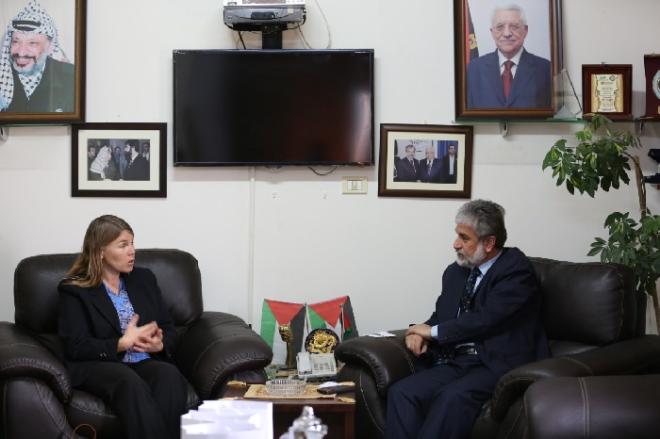 وقال خليفة خلال استقباله في مقر الوزارة اليوم الخميس نائب مدير عمليات وكالة الأمم المتحدة لإغاثة وتشغيل اللاجئين الفلسطينيين "الأونروا"(لشؤون الدعم التنظيمي) في فلسطين السيدة كيلي ماكبرايد ومستشار مدير العمليات للشؤون السياسية والمحلية كاظم أبو خلف، أن "دولة فلسطين قيادة وشعبا تبذل جهداً كبيراً بكل الطرق الممكنة من أجل اسناد "الانروا" حتى تواصل مهماتها، وللحفاظ عليها كراعٍ لقضية وحقوق واحتياجات ابناء شعبنا، اللاجئين الفلسطينيين عملاً بالقرارات الدولية، وقد أكد الرئيس أبو مازن على ذلك في مواقف عدة برفضه المواقف والاجراءات الامريكية الأخيرة."