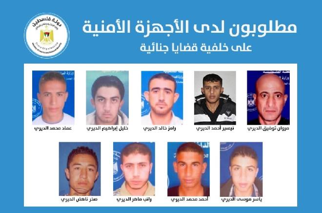 نشرت وزارة الداخلية في قطاع غزة، أسماء وصور تسعة مطلوبين لديها على خلفية عدد من القضايا الجنائية في قطاع غزة خلال الفترة الماضية.