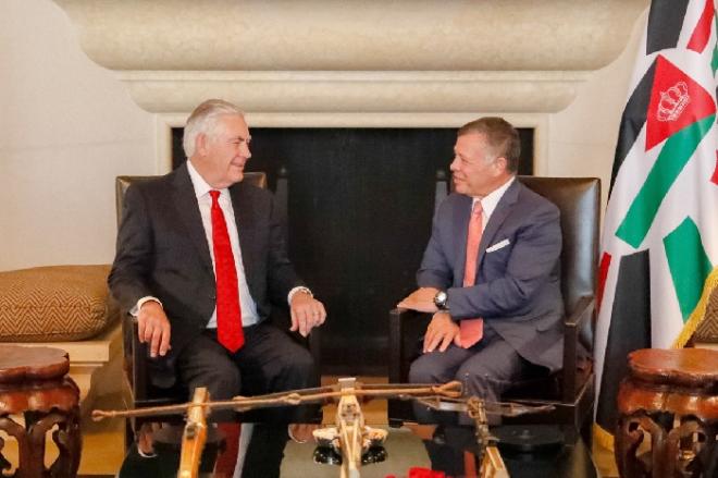 جاء ذلك خلال استقبال الملك عبد الله الثاني اليوم الاربعاء وزير الخارجية الأمريكي ريكس تيلرسون الذي يزور الاردن ضمن جولة له في المنطقة.