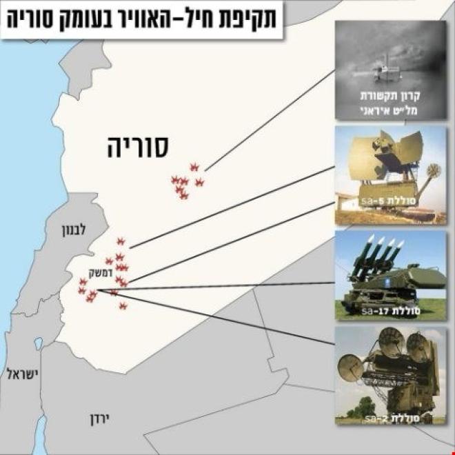 ونشر الموقع البريطاني المعني بالموضوعات العسكرية والإستخبارية، خريطة أصدرها الجيش الإسرائيلي في 11من الشهر الجاري، إدعى أنها لدفاعات جوية سورية تم تدميرها في 10 شباط/ فبراير رداً على إسقاط مقاتلة إسرائيلية من طراز F-16I، وهذا يعني أن مواقع S-200 (سام-5) في جنوب غرب سوريا قد أصيبت.