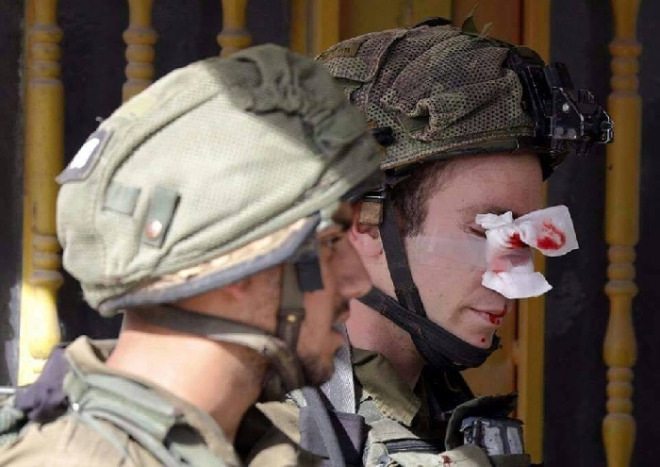 ورصدت عدسات المصوريين الصحافيين إصابة جندي إثر رشقه بالحجارة من قبل الشبان المشاركين في التظاهرات الغاضبة التي اندلعت في مختلف مدن الضفة الغربية وقطاع غزة للجمعة ال 13 على التوالي تنديدا بقرار الرئيس الأمريكي دونالد ترامب بشأن الاعتراف بالقدس عاصمة لدولة لاسرائيل وخطوته الخاصة بنقل السفارة الأمريكية إليها.