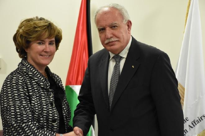 تسلم وزير الخارجية والمغتربين الفلسطيني رياض المالكي، اليوم الثلاثاء، في مكتبه في مقر الوزارة، نسخة من اوراق اعتماد الرئيس الجديد لمكتب تمثيل "فرسان مالطا" لدى دولة فلسطين السيدة ميشيل بورك بو، بحضور مساعدة وزير الخارجية والمغتربين للشؤون الأوروبية السفيرة أمل جادو ورئيسة وحدة المراسم مستشار اول عبير الرمحي.