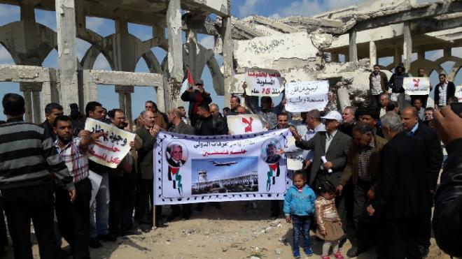 حالة من الإحباط والاستياء بدت على الموظفين، الذين احتجوا، فوق أنقاض المطار المُدمر، اليوم الإثنين، شرقي محافظة رفح، جنوبي قطاع غزة؛ وأعاد ركام المطار ذاكرتهم، لما قبل عقدين من الزمن، مرت على بناء المطار، ونحو عقد ونصف على تدميره.
