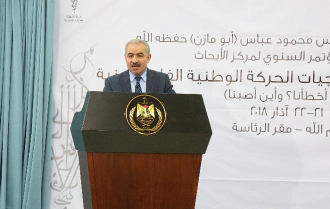 وقال عضو اللجنة المركزية لحركة فتح، رئيس مجلس إدارة المركز د. محمد اشتية، "إن المؤتمر ناقش من خلال 30 ورقة عمل قدمها باحثون وأكاديميون، ونخبة من صانعي القرار الفلسطيني أداء الحركة الوطنية الفلسطينية في مراحل العمل الوطني المختلفة حتى اليوم".