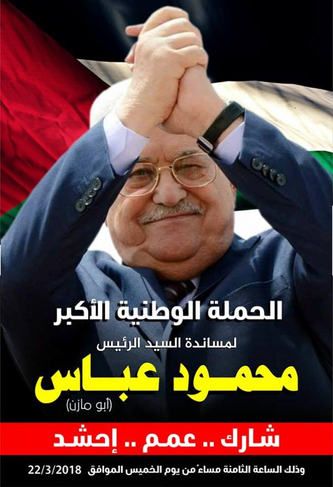 حيت الحملة الوطنية الكبرى لمساندة الرئيس محمود عباس " أبو مازن " فوضناك "،جماهير الشعب الفلسطيني والعربي والأحرار في العالم، الذين قالت انهم "لبوا نداء الوطن والانتماء الصادق، وشاركوا معها بتفاعل منقطع النظير، أربك الحسابات الإقليمية والدولية، وأصاب اطماع الذين حالوا الالتفاف على الشرعية الوطنية عبر تناغمهم مع أمريكا وإسرائيل وحلفائهم بالمنطقة لتمرير صفقة القرن بمقتل."حسب الحملة