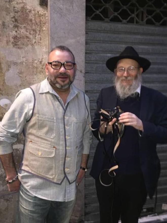 وقال الحاخام اليهودي في تدوينة بالفرنسية على حسابه على “فيسبوك” أرفقها بصورة جمعته بالملك محمد السادس: “كان لي الشرف بعد ظهر اليوم أن أحيل المبادئ العالمية السبعة “شرائع نوح السبعة” إلى سمو ملك المغرب الذي جاء ليشتري رمزيا نظارات من عند “جوناثان” في البناية، التي يوجد فيها “لوبافيتش”، وهو أقدم كنيس يهودي في باريس″.