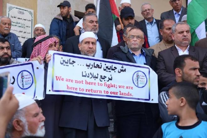 وقال مازن الشيخ رئيس اللجنة الشعبية للاجئين في خانيونس إن المسيرات والحشد سيبدأ في ذكرى يوم الأرض الذي يوافق الجمعة المقبل 30-3-2018.