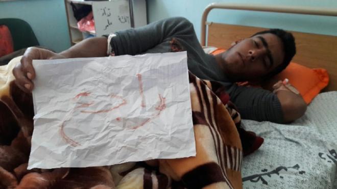 إرادة وعزيمة صلبة يُجسدها الجريح الفلسطيني حماد أبو مسامح "20عامًا"، من سكان بلدة عبسان الكبيرة، شرقي محافظة خان يونس، جنوبي قطاع غزة؛ بعد أن كتب بدمه النازف من جرحه الغائر "راجع" على ورقة صغيرة؛ تجسيدًا وتأكيدًا على التمسك بحق العودة.