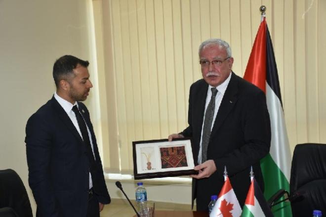 أطلع وزير الخارجية والمغتربين الفلسطيني رياض المالكي وفداً برلمانياً كنديا ضم ثمانية عشر عضواً على الجرائم الإسرائيلية بحق أبناء الشعب الفلسطيني والتي كان أبرزها يوم الجمعة الماضي الذي شهد ارتكاب اسرائيل مجزرة بحق الشعب الفلسطيني في قطاع غزة خلال إحياء ذكرى يوم الأرض، إضافة الى التحرك الفلسطيني المقبل في الامم المتحدة.