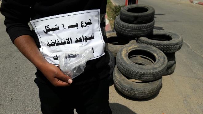 ويقف شبان بعضهم مقنعين على بعض المفارق الرئيسة بمحافظات قطاع غزة، يجمعون التبرعات النقدية بما لا يقل عن شيكل إسرائيلي، من السائقين والمارة، لشراء الإطارات المطاطية، فيما قدم الكثير من المواطنين إطارات بالمجان.