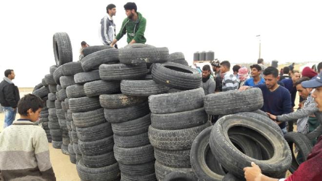 وأضافت الصحيفة "حدود القطاع تبدو كورشة سيارات عملاقة جمع الفلسطينيون عددا لا يحصى من الإطارات لإخراجها في المظاهرات مما سيؤدي إلى تشويش عمل قناصة الجيش"، محذرة من خطر الدخان الذي سيتصاعد.