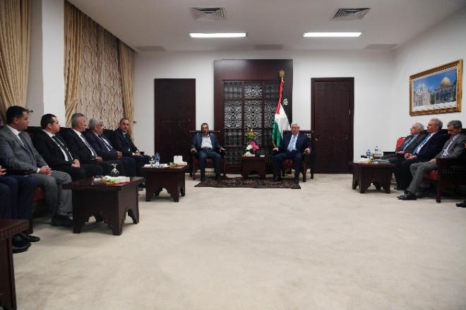 استقبل الريس الفلسطيني محمود عباس (أبو مازن)، بمقر الرئاسة في مدينة رام الله، مساء الثلاثاء، الفائزين بانتخابات نقابتي المهندسين والمحامين، بحضور مفوض المنظمات الشعبية في اللجنة المركزية لحركة فتح توفيق الطيراوي.