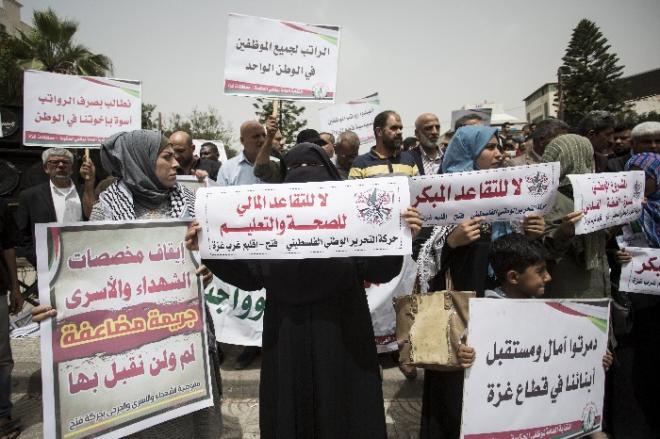 شارك العشرات من المواطنين في قطاع غزة، الذين يتقاضون رواتبهم من الحكومة، في وقفة، لمطالبة حكومة الوفاق بصرف رواتب الموظفين الحكوميين.