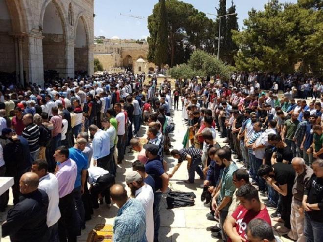 وكانت وفود المصلين بدأت بالتدفق على المسجد المبارك منذ ساعات الصباح قادمة من مختلف ضواحي وأحياء القدس، والتجمعات السكانية داخل أراضي العام 48م، فضلاً عن مشاركة عدد كبير من مسلمي جنسيات أجنبية.